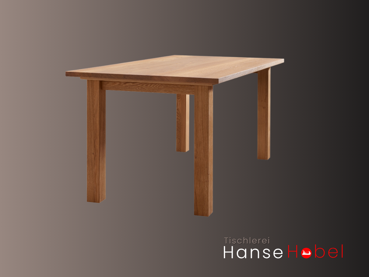 Klassischer 4-Bein-Tisch Osnabrück aus Massivholz – stabil & harmonisch Der Allrounder unter den Tischen – mit vier soliden Massivholzbeinen und abgerundeter Tischplatte. Ideal für Esszimmer, Wohnküche oder Seminarraum. Die Bauweise ist robust und zeitlos.